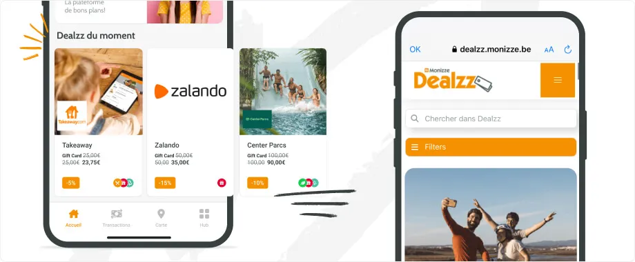 Augmentez votre pouvoir d’achat en ne manquant plus jamais de bons deals, grâce à la nouvelle intégration de Dealzz dans votre app. Découvrez les meilleurs Dealzz du moment via la page d’accueil et retrouvez-les sur notre plateforme d’avantages en un clic. Sur Dealzz, vous trouverez plus de 100 offres et réductions sous forme de cartes-cadeaux et de codes promotionnels avantageux.